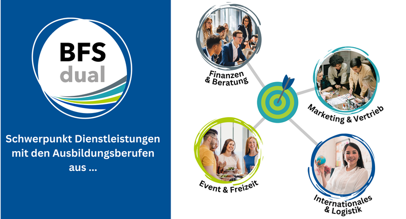 Bei uns steht der Schwerpunkt Dienstleistungen im Mittelpunkt - mit vier Ausbildungsschwerpunkten, die dir richtig viele Türen öffnen: