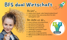 Wir starten im Schuljahr 25/26 mit vier Klassen. Nach einer Orientierungsphase wählen die Schüler einen von vier Schwerpunkten: Finanzen & Beratung, Vertrieb und Logistik, Event und Freizeit, Internationales und Marketing. Im 2. Halbjahr gliedert sich diese Schulform in zwei Stränge: Die BFS dual B mit dem Ziel, die Schüler*innen bestmöglich auf eine Berufsausbildung vorzubereiten und die BFS dual F, die auf den Besuch der Klasse 12 der Fachoberschule vorbereiten soll. |