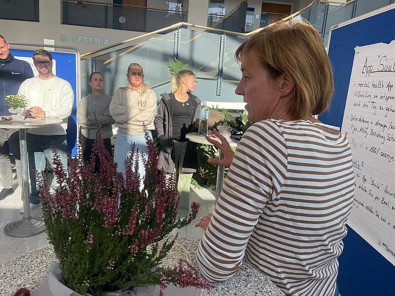 Zum Auftakt hieß Insa Oetjengerdes als Bindungsgangleitung der Fachschule Betriebswirtschaft im Namen der Lehrkräfte die Teilnehmenden willkommen. Farbig codierte Namensschilder erleichterten die Orientierung und sorgten gleich für Gesprächsanlässe. Im Anschluss wurde die Mental-Health-App „Soulx“ vorgestellt: ein niedrigschwelliges Angebot für stressige oder schwierige Phasen – anonym, freiwillig und mit dem Ziel, das individuelle Wohlbefinden zu stärken.