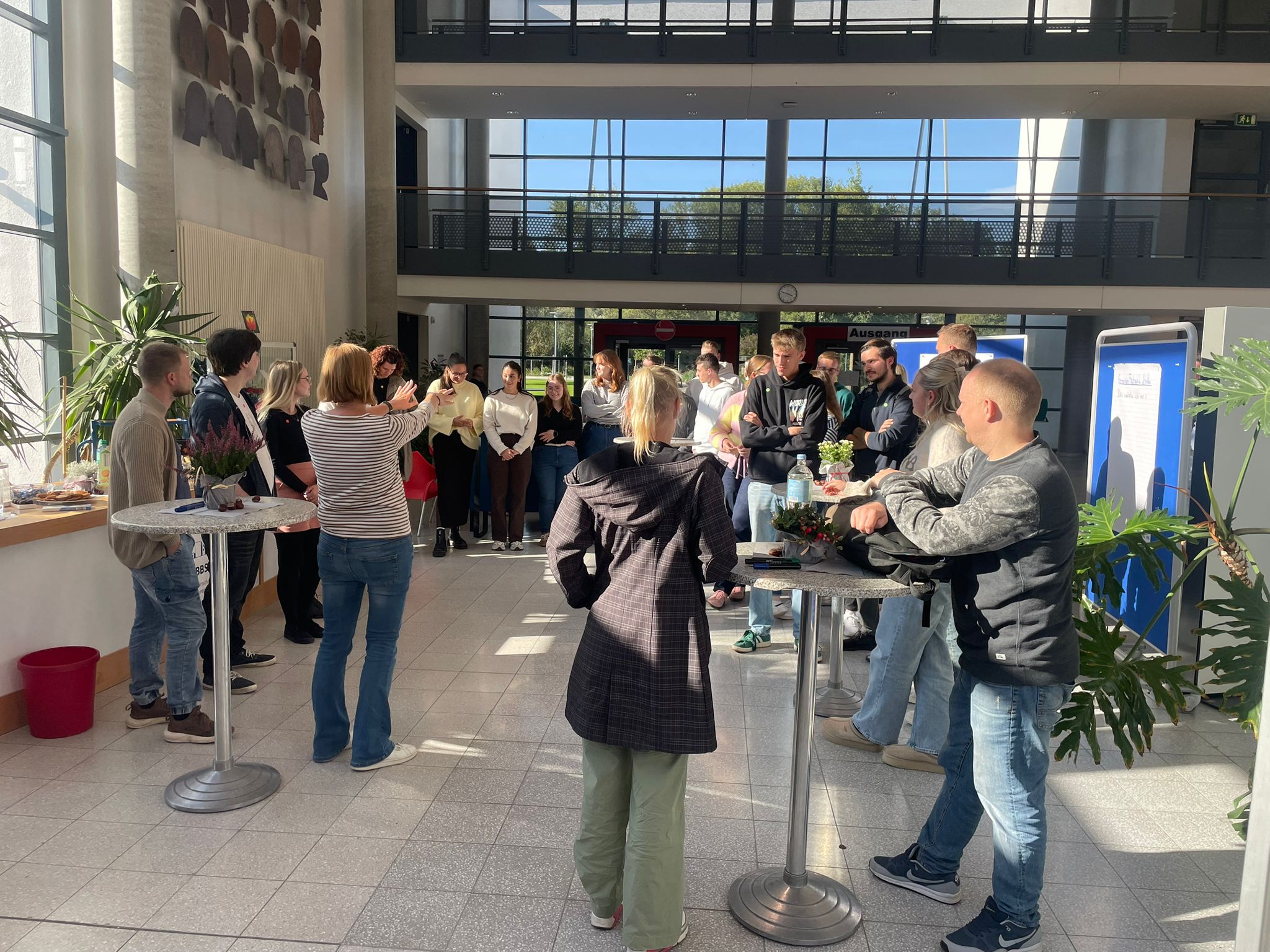 Dann kam Tempo in den Saal: Beim Kennenlern-Bingo suchten die Teilnehmenden in vielen kurzen Gesprächen passende „Treffer“ – ein unkomplizierter Icebreaker, der Berührungsängste abbaut. Das anschließende Kaffeetrinken an Stehtischen in Pausenhalle oder Aula bot Raum, Fäden aufzunehmen, Kontakte zu vertiefen und nebenbei das Kuchenbuffet zu genießen.