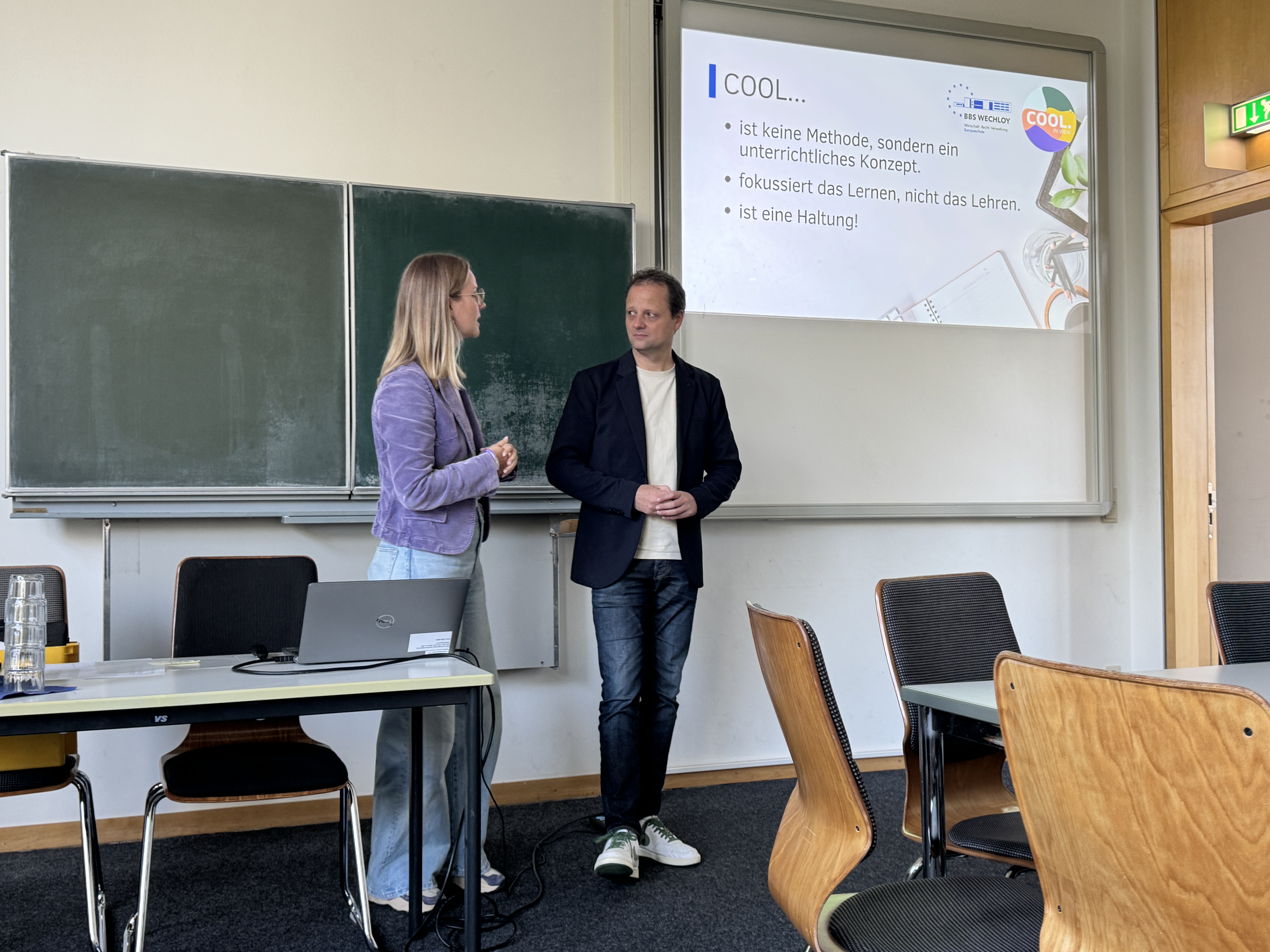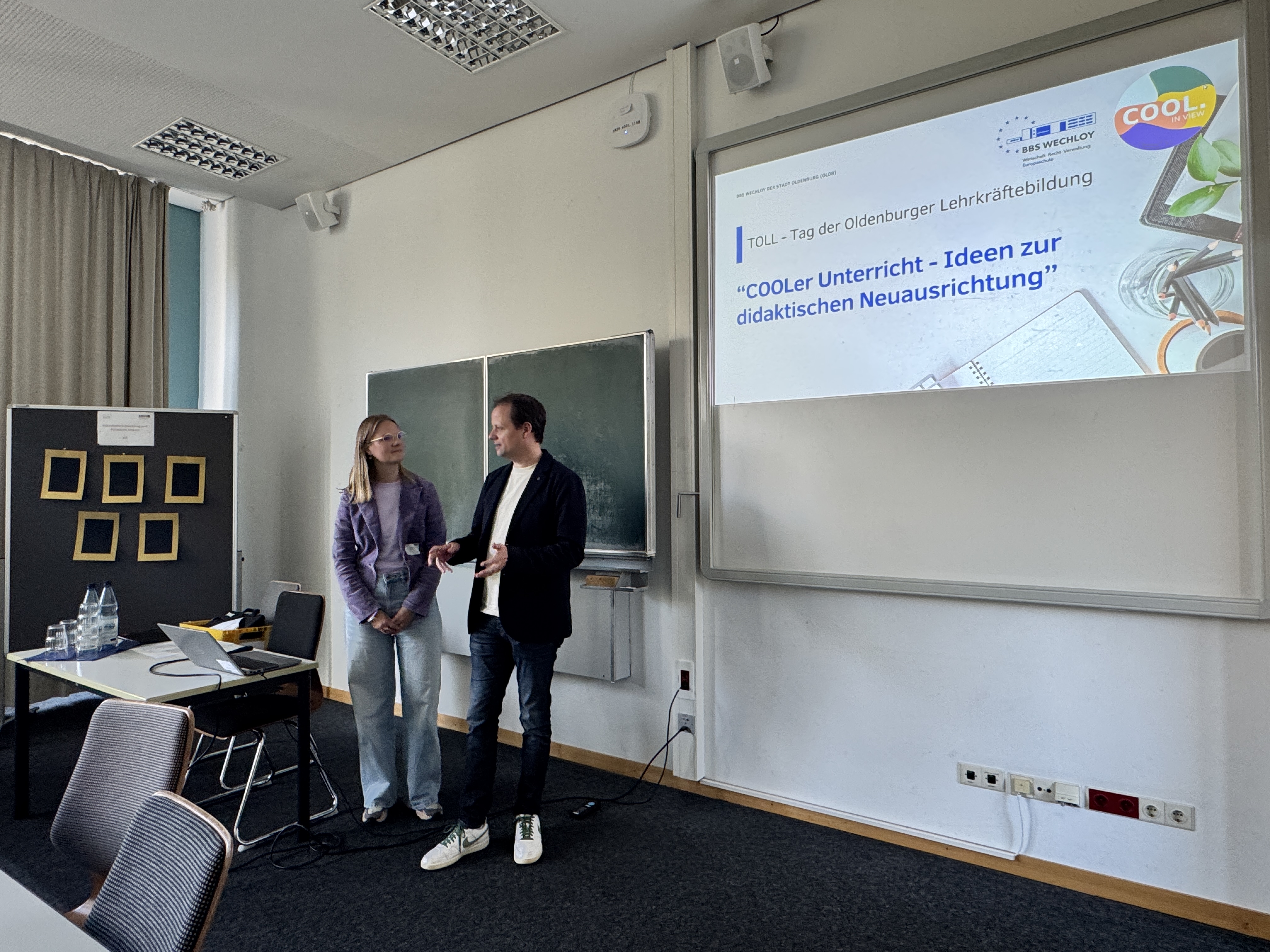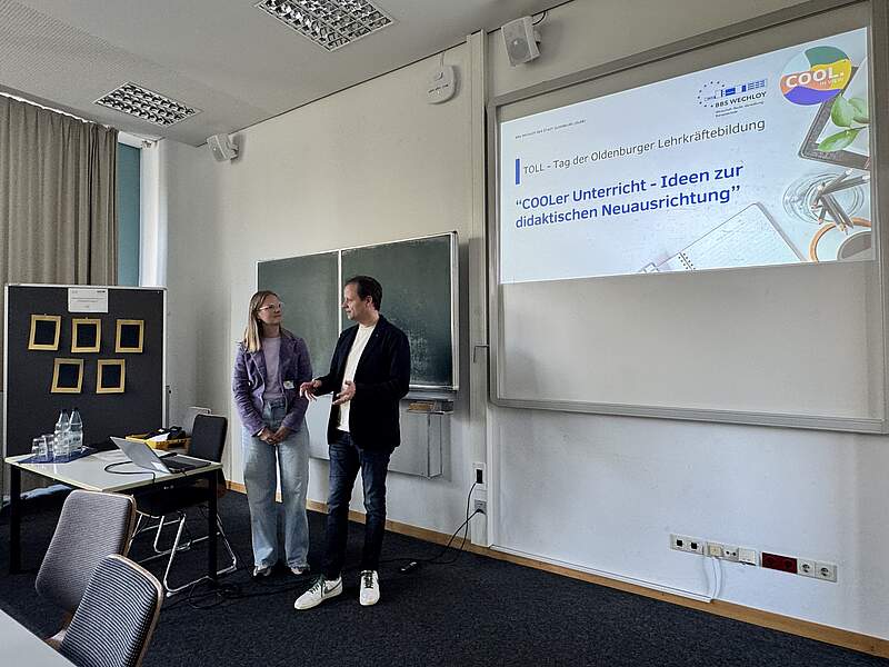 Als Teil des Workshops „Individuelle Entwicklung und Potenziale fördern“ waren auch wir dieses Jahr beteiligt. Dr. André Bloemen und Anneke Meyer gaben unter dem Titel „COOLer Unterricht – Ideen zur didaktischen Neuausrichtung“ Einblicke, wie Freiheit, Kooperation und Selbstverantwortung Lernende strukturiert in ihrer persönlichen Entwicklung unterstützen. In anregender Atmosphäre, moderiert von Dr. Holger Lüschen (OFZ, Universität Oldenburg), entstanden wertvolle Gespräche mit Lehrkräften, Forschenden und weiteren Interessierten. Der Diskurs über die Zukunft von Lernen und Schule, über wirksame Lernsettings, über Haltung statt Methode sowie über konkrete Tools vom Aufgaben-Design bis hin zur Lernprozessreflexion war spannend und gewinnbringend für alle Teilnehmenden.