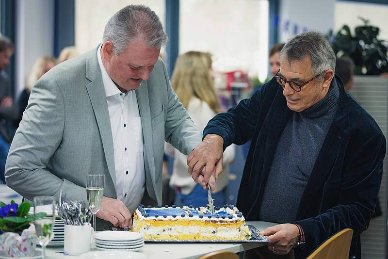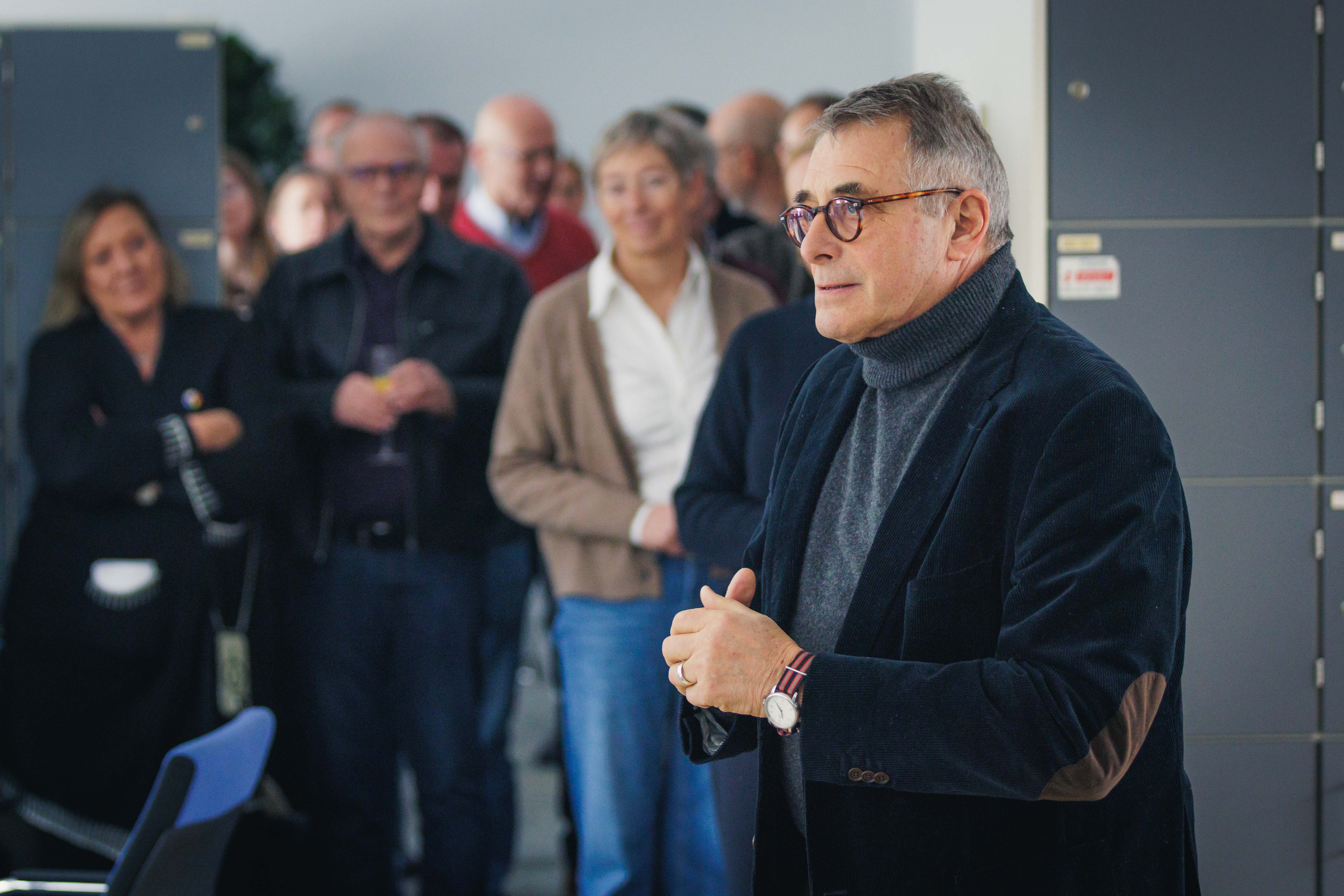 Ein echtes Highlight war zudem der Besuch von Pensionär:innen, die unsere Schule damals mit eröffnet haben. Dieses Wiedersehen brachte Geschichte und Gegenwart zusammen – emotional, herzlich und mit viel Anerkennung für das, was aufgebaut wurde. Auch der damalige Schulleiter Ernst Jünke war anwesend. In seinen Worten wurde deutlich, worauf es ihm in der Gründungszeit ankam: „Strukturen zu schaffen, die Sicherheit geben aber auch Mitwirkung ermöglichen.“ Außerdem würdigte er den gemeinsamen Weg: „Das Kollegium ist offen, neugierig und engagiert den Weg gegangen.“
