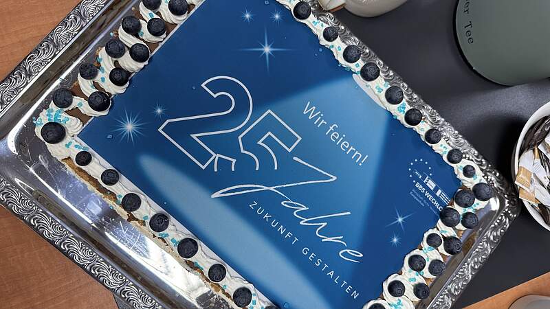 Auch das Kollegium wurde nicht vergessen: Eine Geburtstagstorte für die Kolleg:innen setzte ein süßes Zeichen der Wertschätzung. Fotos und Videoaufnahmen der letzten 25 Jahre liefen sichtbar auf allen Monitoren. Ein weiterer Höhepunkt war die Verleihung „Schule der Vielfalt“, über die bereits gesondert berichtet wurde – und die dennoch sichtbar Teil dieser besonderen Woche blieb.