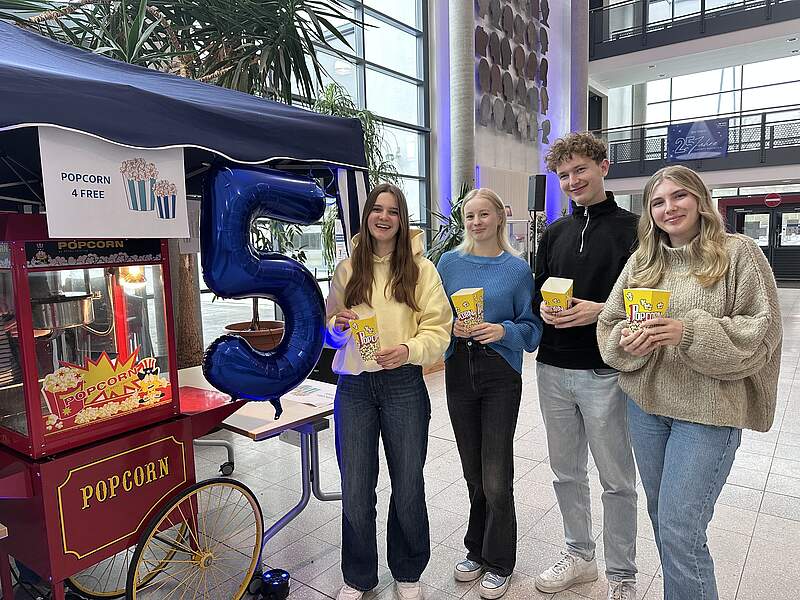 Jeden Tag sorgten verschiedene DJs – Lehrkräfte und Schüler – in den Pausen für den passenden Soundtrack der Jubiläumswoche. Dazu gab es Popcorn, eine Fotobox für persönliche Erinnerungsbilder und viele kleine Momente, die den Schulalltag in eine echte Geburtstagsatmosphäre verwandelten. Liebevoll geschmückt war nicht nur das Lehrerzimmer, sondern auch die Pausenhalle. Besonders die tanzenden Schüler in den Pausen zeigten: Diese Woche gehörte allen – und sie wurde angenommen.